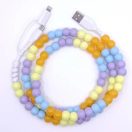 Cavo USB con guaina decorata da perle colorate. Eleganza, colore, allegria e vivacità. Un mix unico fatto apposta per te.